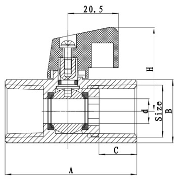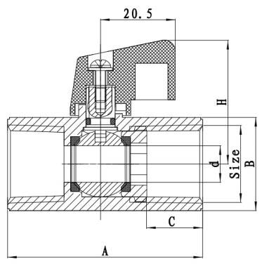 | Item # | Tamaño | d IN(mm) | A IN(mm) | B IN(mm) | C IN(mm) | H IN(mm) |