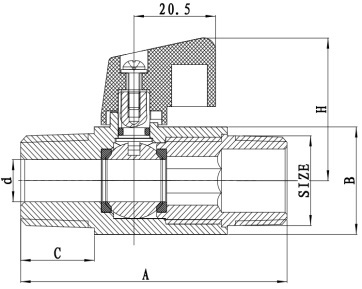 | Item# | Tamaño | d IN(mm) | A IN(mm) | B IN(mm) | C IN(mm) | H IN(mm) |