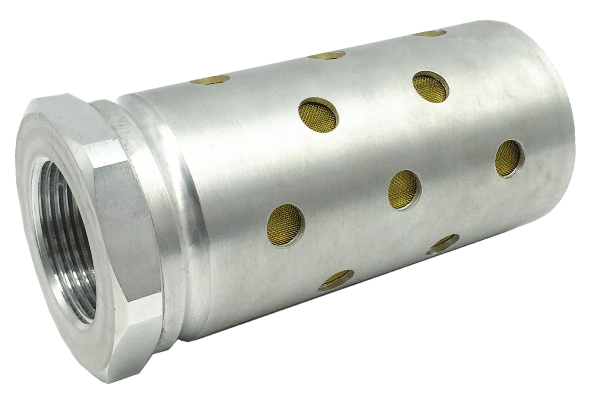 Este mofle o silenciador está diseñado con una carcasa de metal y una contrapresión súper silenciosa. Una pantalla de filtro mesh 50/60 de latón y acero inoxidable autolimpiante está montada en la salida de aire de la válvula neumática, lo que minimiza los niveles de ruido y previenen que entren residuos en la válvula.