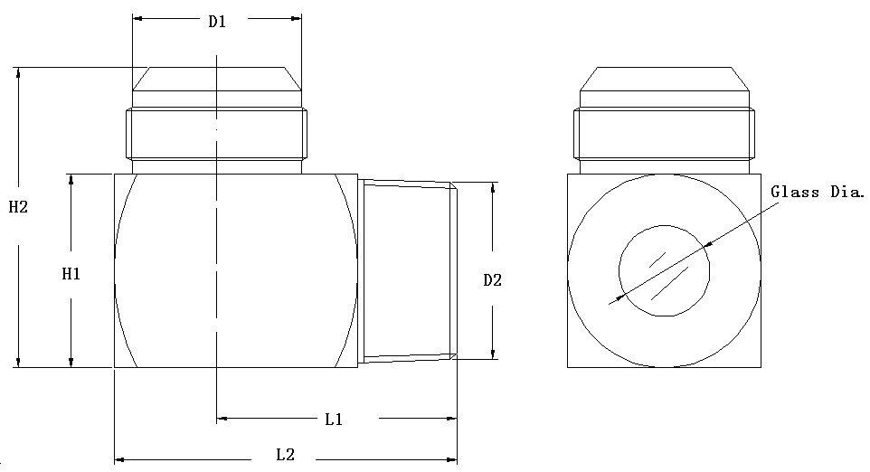 | Item # | D1 | D2 | Diámetro del vidrio | L2 | L1 | H2 | H1 |